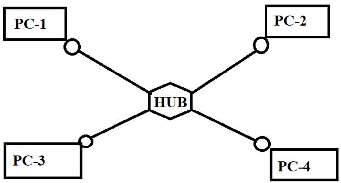 Hubs work in the physical layer of the OSI model. A hub is a device for connecting multiple Ethernet devices and making them act as a single network segment. It has multiple inputs and output ports in which a signal introduced at the input of any port appears at the output of every port except the original incoming port.